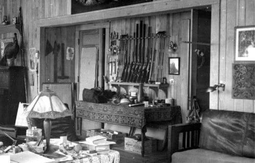 Beadel House living room in 1937; Henry Beadel’s guns are displayed in the gun rack.