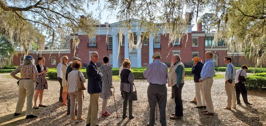 Kevin McGorty gives a tour to a group at Livingston Place who were on a Red Hills’ architecture study trip. Photo by Jessica Coker