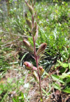 Schwalbea americana occurs in a few remnant populations in eight states including Louisiana, Florida, Georgia, Alabama, South Carolina, North Carolina, New Jersey, and Massachusetts. The species was believed extirpated in Louisiana, Alabama, and Massachusetts, but was rediscovered within the last two decades. Like many other species of longleaf pine groundcover, the primary threat is fire exclusion or insufficiently frequent fire. Some observations suggest the recent shift from traditional dormant season burning to burning early in the growing season, e.g. in April shortly after emergence in the spring, may be negatively impacting the species, although this seems not always to be the case. Additional research is needed on season of burn, soil moisture effects, and effects of fire intensity variables. The species may be able to tolerate and even benefit from some limited amount of soil disturbance, but excessively frequent or intensive soil disturbance will eliminate it. More research is needed to understand impacts of soil disturbance regimes. Donna and I will work with any landowner who wishes to manage or restore Schwalbea. Protections of the federal Endangered Species Act do not extend to private lands as far as plants are concerned, so landowners can do as they like with federally endangered plants on their property. This can be a positive, as well as a negative for rare plant conservation, since there is more flexibility for management and restoration.